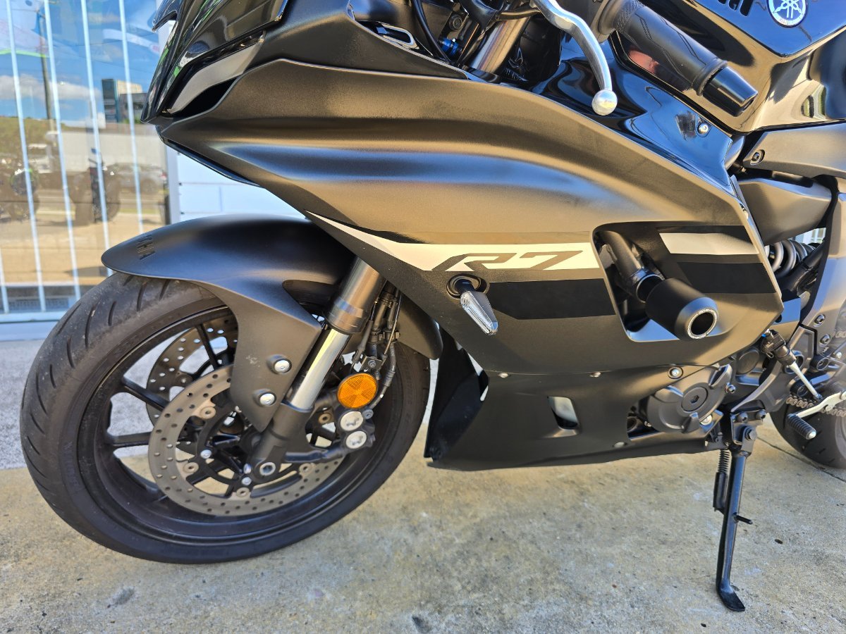 This is a one owner from new bike with 3 keys (including the red master key). Already fitted is an aftermarket pipe for a nicer note (stock exhaust can be included if you want), and a tinted screen to complete that supersport sleek black look. Oggy knobs/frame sliders have been fitted for extra peace of mind and safety for your machine. It has always run on quality fuel and looked after properly, this shows in the condition and the ride. The bike presents very well, rides perfectly and needs nothing except a new owner. If you?re chasing a clean, black R7 LAMS with sensible mods and known history, this is it.